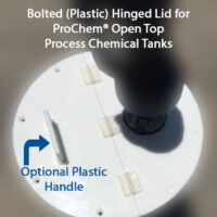 Peabody Engineering offers several options for lids on your ProChem® Open Top Process Chemical Tanks. We can add a stainless steel or plastic hinge to your polyethylene lid. If you would like one side to be bolted down and the other open, we can add stainless steel or plastic bolts to the half that stays closed.